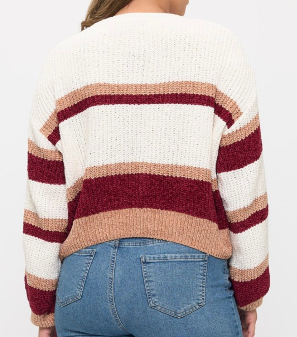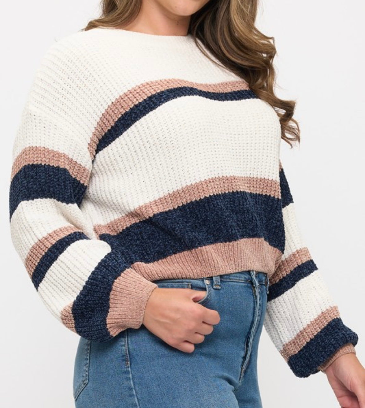 Plus size chenille color block pullover sweater top