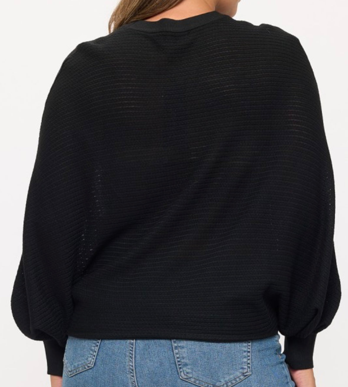 Plus size round neck relaxed fit batwing knit sweater top. Perfect for layering over a camisole or pairing with denim jeans or leggings.