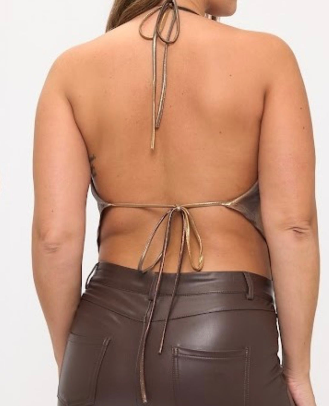 Plus size metallic foil halter cowl neck hankerchief hem tank top
